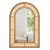 35.5 Inches x 23.5 Inches Rattan Wall Mounted Decorative Mirror with Wooden Frame-Natural