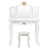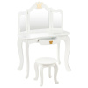 The vanity set has been tested from EPA and the paint we choose is lead-free and has no peculiar smell. Comes with a tri-folding mirror, your little one can adjust the angle of mirror conveniently to get much light and make up better. The dresser also has a drawer to help store small items such as hair ties, brushes, makeup, nail polish and other fun trinkets. In addition, the mirror can be removed and the table is also can be used for writing or reading. Designed in pretty and cute appearance, the vanity set will add a touch of elegance to your child’s room.