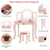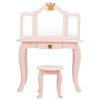 Kids Makeup Dressing Table with Tri-folding Mirror and Stool-Pink