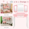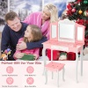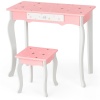 Kids Princess Vanity Table and Stool Set with Tri-folding Mirror and Drawer-Pink