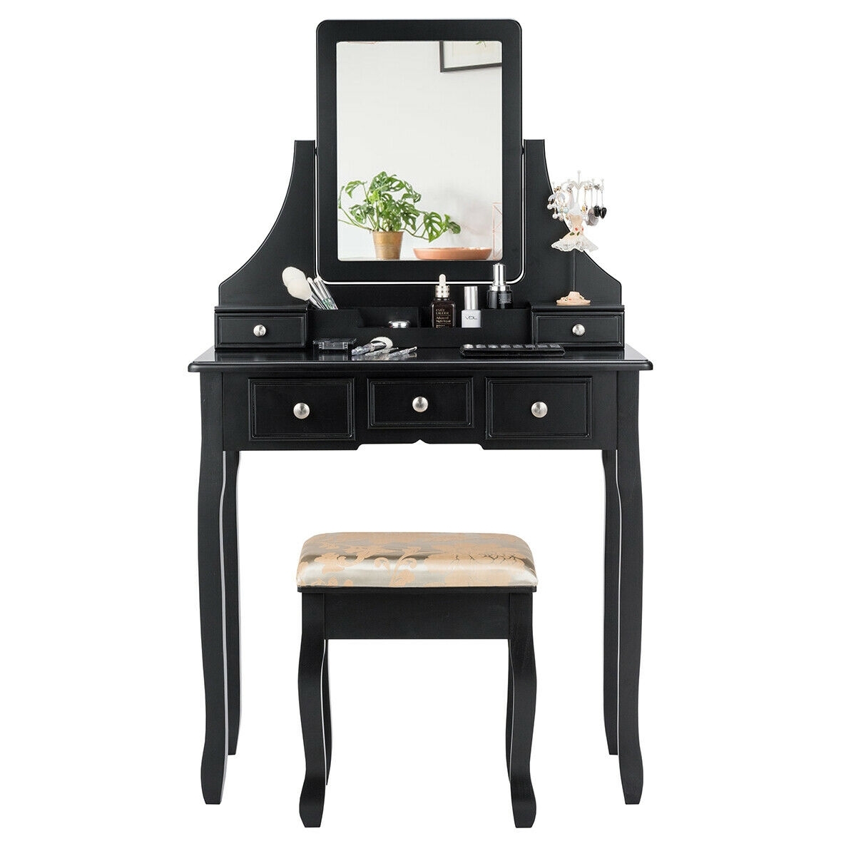 5 Drawers Removable Box Makeup Dressing Vanity Set-Black