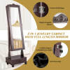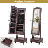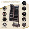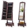 Rolling Floor Standing Mirrored Jewelry Armoire with Lock and Drawers-Brown